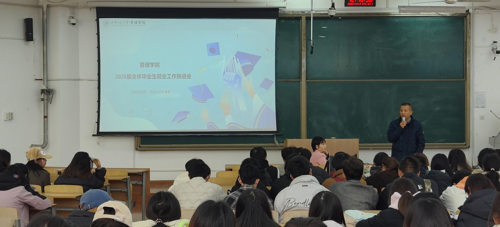 11月17日中午,管理学院在临潼校区B-133召开2026届毕业生大会,围绕毕业事务推进、安全教育强化、就业服务提升及未来规划指导等主题进行安排部署。并特别邀请2009级校友钱维玲返校分享经验,为毕业生提供全方位指导。