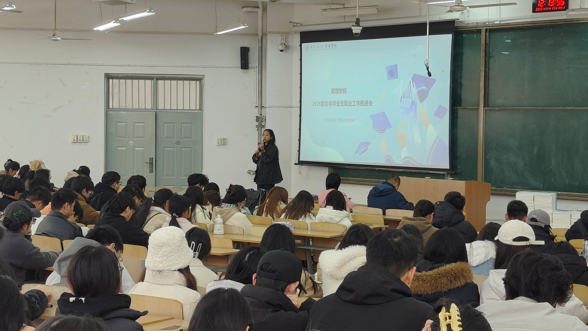 此次大会通过“安全教育+事务指导+就业服务+榜样引领”四位一体模式,为2026届毕业生厘清了毕业季关键任务,凝聚了奋进力量。管理学院将持续以生为本,精准施策,助力毕业生高质量充分就业与全面发展。(撰稿:吴昌敏;审核:王爱华、代锴)