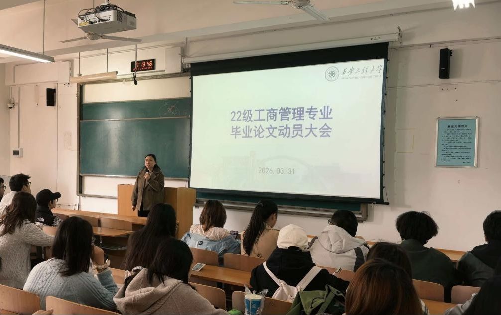 为扎实推进22级工商管理专业毕业论文工作,明确毕业论文写作规范与时间要求,助力学生顺利完成学业,工商管理专业三全育人导师团于2026年3月31日在临潼校区D-3112组织召开了22级毕业论文动员大会。22级工商管理专业学生及相关指导教师参加了本次会议。