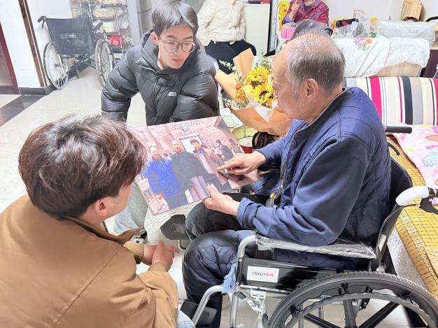 当日下午,在社区工作人员带领下,志愿者们带着鲜花与慰问品来到退伍老兵寇讲话家中。77岁的寇老精神矍铄,热情接待了同学们。他深情回忆了1969年参军后亲历珍宝岛自卫反击战战备状态的峥嵘岁月,讲述了在沈阳军区执行任务、后调任北京成为空军通讯兵的难忘经历。“当时在青龙县山区转接信号,大雪封山,我们化雪取水,45天一轮换……”寇老的讲述朴实而动人,让同学们仿佛置身那段艰苦而光荣的岁月。他最后嘱托道:“和平年代也要强军,没有强大的军队就要受欺负。”这句话深深烙印在每位志愿者心中。