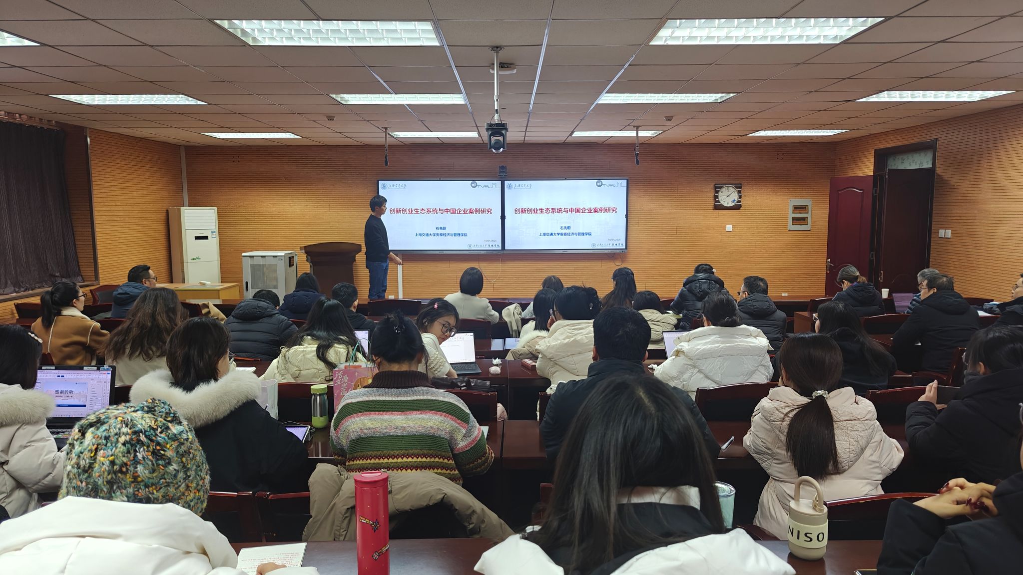 1月18日上午,管理学院邀请上海交通大学安泰经济与管理学院石先蔚副教授来校进行学术交流,石先蔚副教授作了“创新创业生态系统与中国企业案例研究”的学术报告。报告会由管理学院副院长王渊主持,学院学术骨干、青年教师及部分研究生参加了报告会。