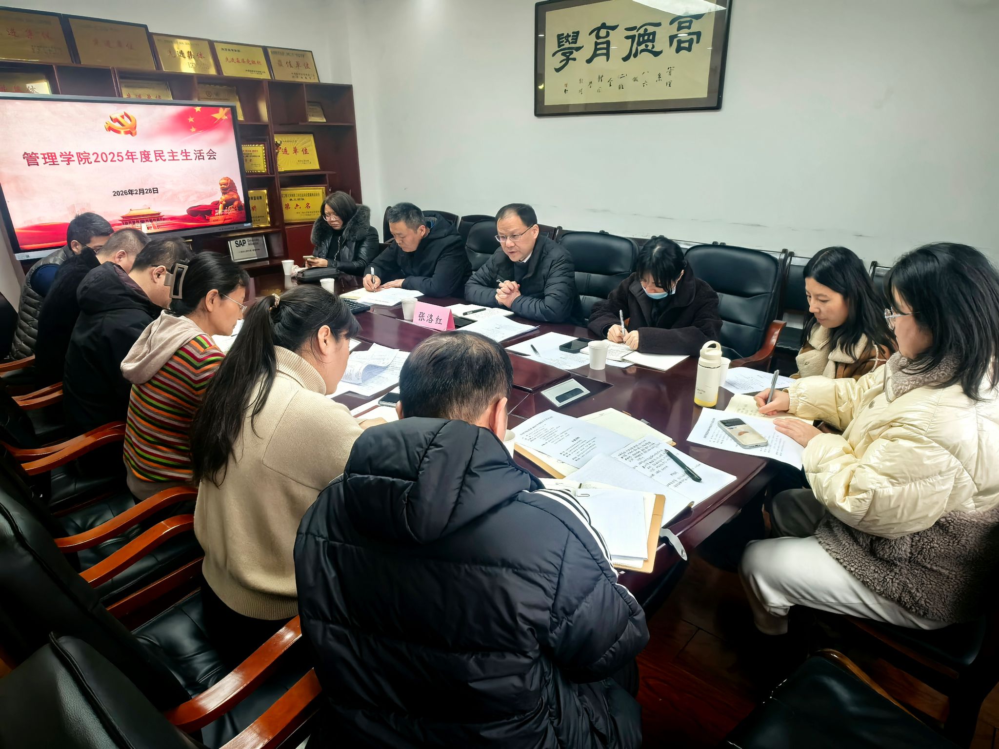 张洛红对本次民主生活会进行了点评讲话。他表示对学院在会前准备充分、思想认识到位,问题查摆深入、剖析反思到位等方面给予肯定,同时指出了存在的差距与不足。并提出三点要求:一是以整改促发展,强化科技创新引领,科学谋划“十五五”规划。要将整改与推动学院高质量发展紧密结合,以前瞻性眼光谋划“十五五”规划。主动调整优化专业结构,加快传统专业的数字化转型和智能化升级,积极探索“AI+管理”的深度融合路径,在“智能+”背景下打造管理学院的新优势、新特色,以整改实效提升核心竞争力;二是建强人才队伍,激发全员活力,夯实学科科研人才根基。加大高层次人才引进培养力度,打造高水平学科团队。激发调动全院教职员工的积极性、主动性和创造性,积极探索跨学科交叉融合,形成科研合力,推动教师与学院同向发力;三是加强班子协同,凝聚发展共识,提升学院治理能力和履职水平。班子成员要加强沟通协作,落实“一岗双责”,提升科学决策水平。建立问题清单、责任清单,实行销号管理,确保整改落地见效,带动全院师生推动学院事业再上新台阶。